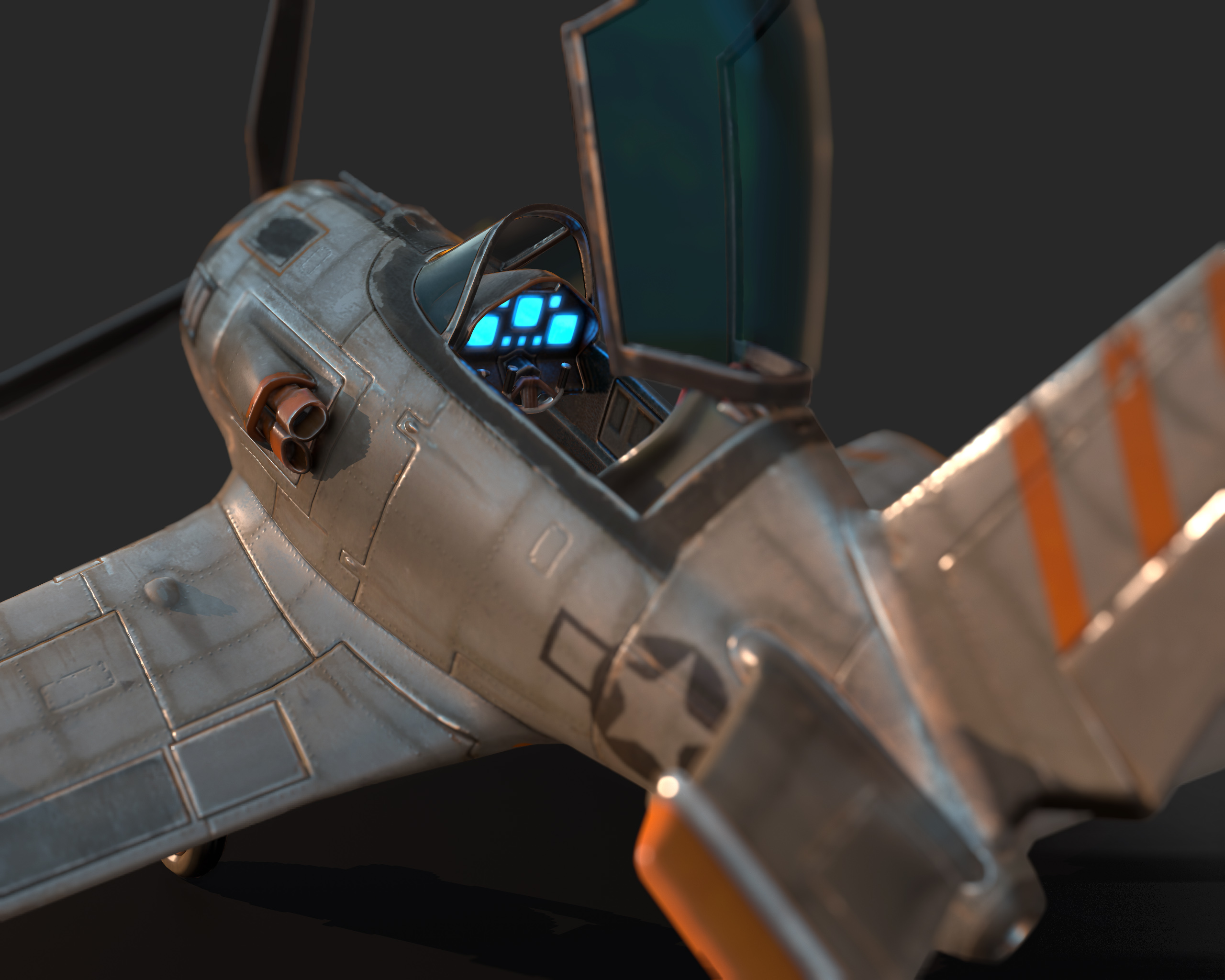 I tried to create a design with inspiration from some of the wonky proportions of Scott Robertsons aeroplanes. Rendered in Marmoset Toolbag 2. Textured by hand in Photoshop. Modelling and baking in 3ds Max.